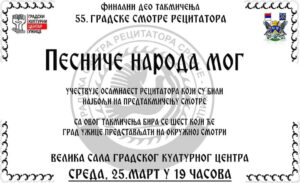 Pobednici 55. gradske Smotre “Pesniče naroda mog” 26/03/2026 Okružno takmičenje Smotre recitatora biće održano u Kosjeriću